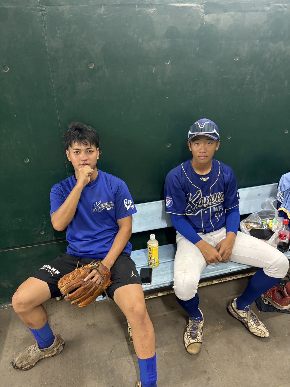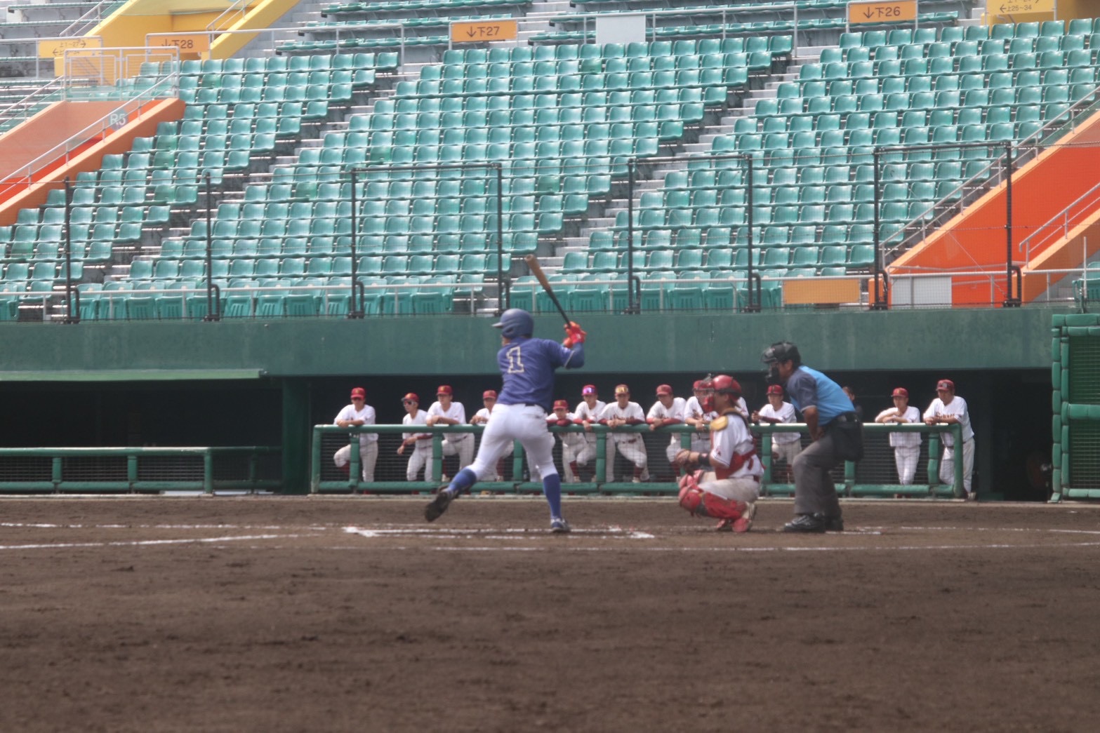 2死から3番川瀬(広陵③)がセンターへのツーベースヒットでチャンスを作ると4番横道がセンターへのフェンス直撃のタイムリーツーベースヒットを放ち1点追加。その後、フォアボールとデッドボールで2死満塁を作り代打長島(筆者)。2球目をライト線に引っ張り込むがラインぎりぎりで惜しくもファール。4球目でファーストゴロになり追加点ならず。ベンチで門屋(盛岡三③)にファールになったのは日頃の行いやなーと言われる。