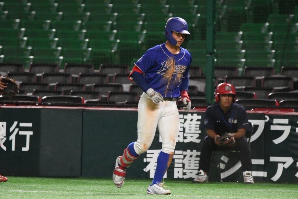 先頭赤池(鹿児島南))がレフト前ヒットで出塁すると死球と送りバントで1死2、3塁と初回からチャンスを作り4番好調横道(健大高崎①)のタイムリーヒットで1点を先制。1-0!