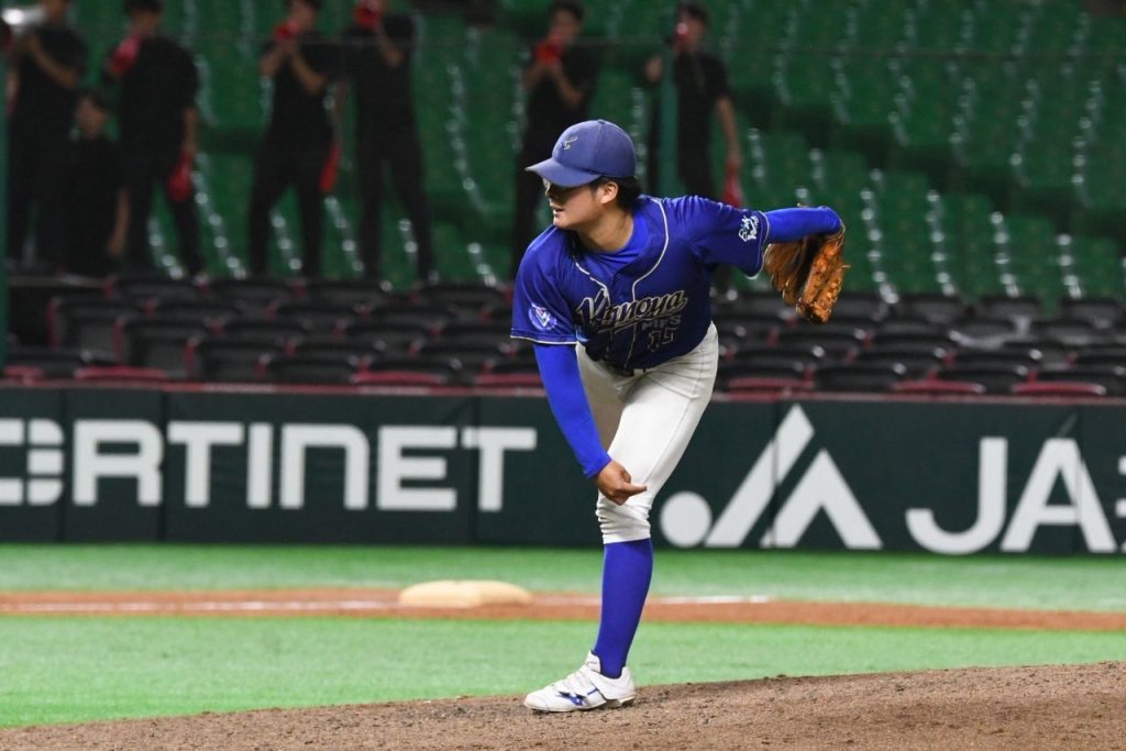 先頭に死球を与え無死1塁からエンドランを仕掛けられショートの横を抜けるヒットを打たれ、無死1、2塁となる。6番バッターに送りバントを決められ1死2、3塁のピンチを迎える。ここでセカンドゴロの間に3塁ランナーがホームイン1-1の同点となる。2死3塁、ここから8番にレフトへのタイムリーを浴び、2-1と逆転を許す。その後のバッターを抑え2点で抑える。