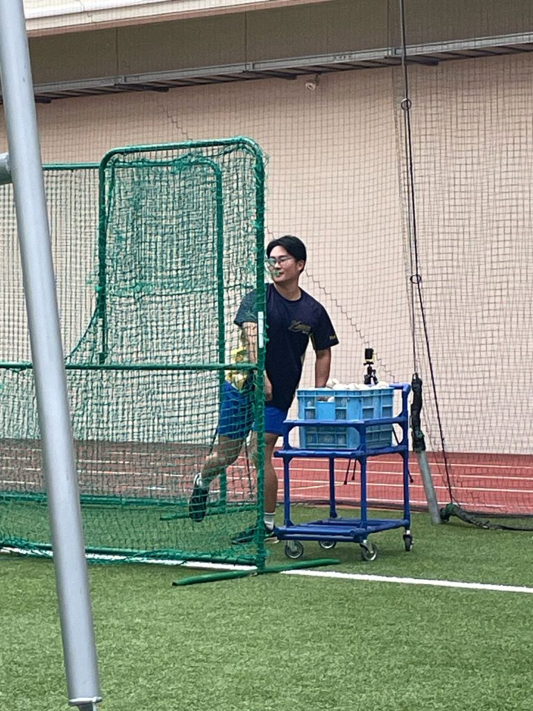投手はマウンドからの投球速度や回転角度、回転数を測りました。また、野手は平地での投球速度、プルダウンでの投球速度を測りました。プルダウンとは助走をしっかりつけて投球を行うことであり、平地での投球より、プラス10からくらい速いボールを投げることができます。