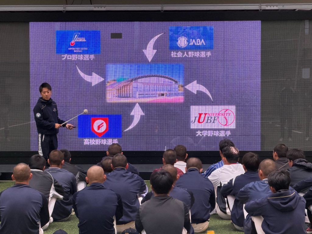 午後には、大学の社会人野球交流大会に出場するメンバーと高校選抜との練習試合も行われました。高校生は大学生のレベルを知ること、大学生は自分たちの弱点や修正点などを知ることができた良い練習試合を行うことができました。11月22日から24日にかけて行われる熊本、大分の選抜チームとの試合も頑張ってください!