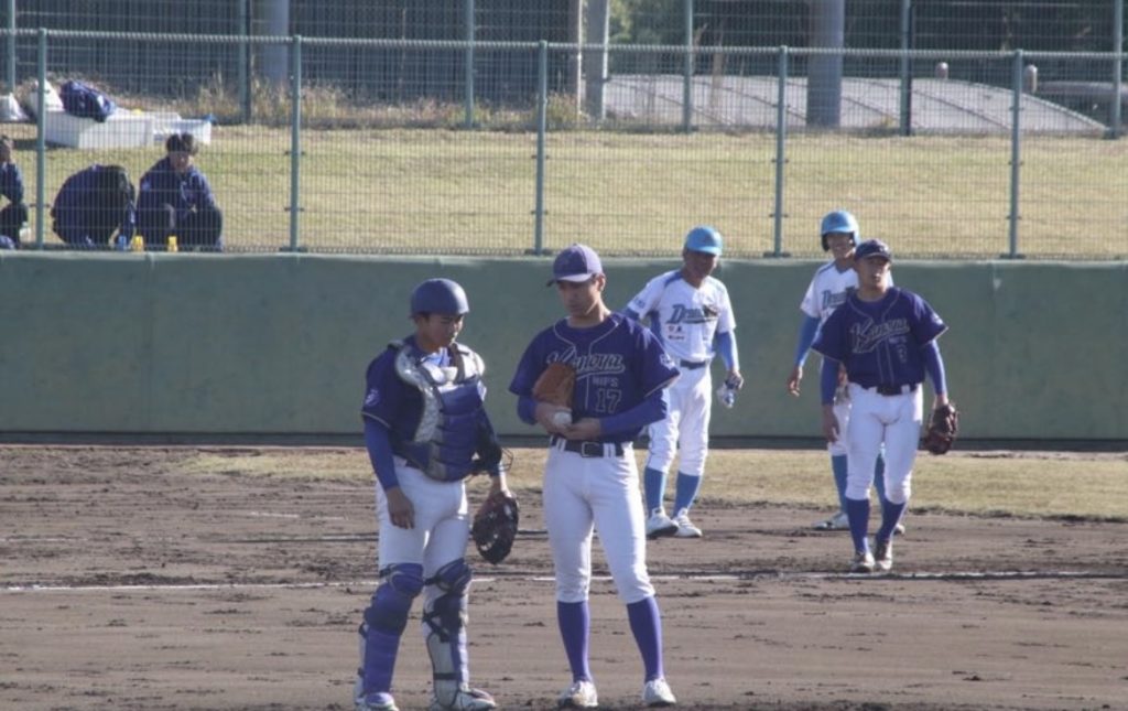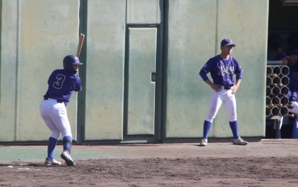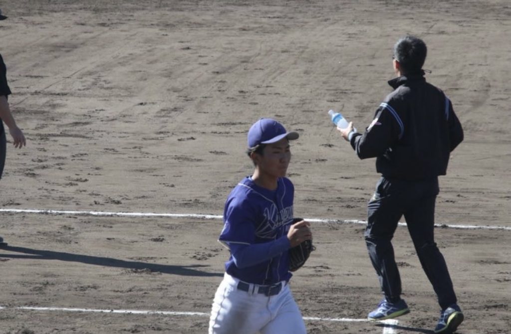 反撃に出たい場面。主将・洲本からの打順で流れを作りたいところだが、凡退。続く佐衛田が一・二塁間への渋い当たりで出塁するも、後続が続かずこの回は無得点。