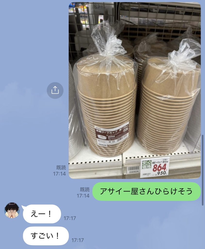1年の野島です^^ まだ私の存在についてご存知ない方が多いと思います。また、存在を知っていてもよく分からない人間だと思われていると思います。 私も私は良く分かりません。🙃 こんな私ですがどうぞよろしくお願いいたします🤲🏻 さて、本日の話題は”私がリコにしてしまうこと”です。 リコにしてしまうこととしては、アサイー関係のものを見つけたら写真を送ったり、報告したりしてしまうことです笑🥣 普通に考えると、めちゃくちゃ意味がわからないめんどくさい奴ですが、リコはちゃんと返信してくれるので続けてしまいます。笑 私がこうしてしまうのは、お母さんが私に対して同じようなことをしてくれてたからだと思います。 私はハイキューという漫画に登場する、田中龍之介が大好きです。だから、お母さんは田中龍之介を見つけたら写真で教えてくれたり、グッズを買ってきてくれたりしていました。そんなお母さんの影響を受け、常にアサイーを求めているリコにも同じことをしてしまいます。(写真を送るだけですが、、笑) アサイー関連のものを見つけるのはリコよりはやいです笑^^
